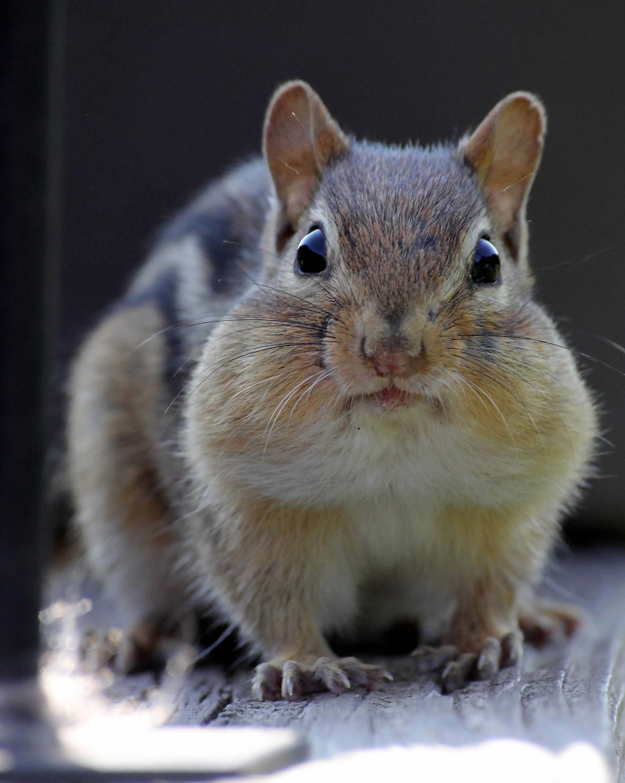 Chipmunks, it appears, have amazing spatial perception. One little fellow was helping himself to my birdseed (most likely a descendant of the critter in the photo), and completely ignoring the dog…until the dog spotted him.