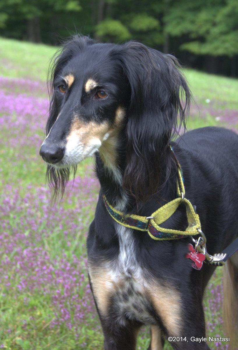 Ryder is, officially, Can & Am Ch Lorrequer Kharyder. He is a multiple Best-in-Specialty winning dog with numerous Awards of Merit and Select Dog awards under breeder judges in both the U.S. and Canada. He was chosen as Select Dog at our own Saluki National in 2014, and his son Jesse (GCh Freespirits As You Like It) won the National in 2015. Ryder is a very special boy who, in temperament, reminds me very much of my first Saluki, and my first and forever heart-dog, Yoda.