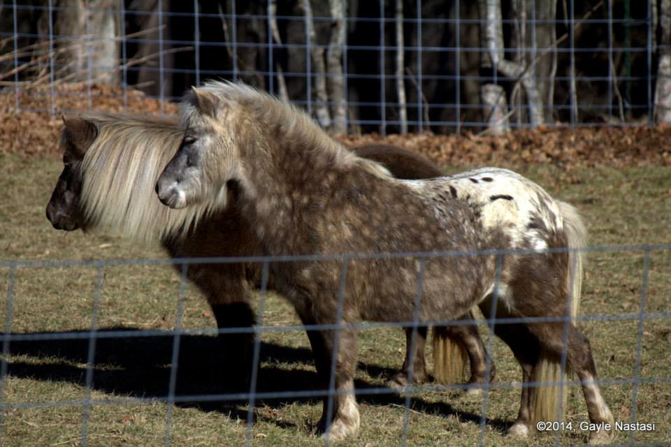 It wasn’t until I was in my upper fifties, however, that I finally got that pony. Two, in fact, though technically, they are Miniature Horses. My dear friend, Wes (see the entry on NYWRC on my Our Animal Friends page) came across a situation where all of the animals needed rehoming, and arranged to bring my little mares, Starling and Kestrel, into my life. They moved home in October of 2014, and fill my days with sunshine. Star is a silver dapple mare, and Kestrel a silver dapple appaloosa. They are sweet, friendly, happy little girls.